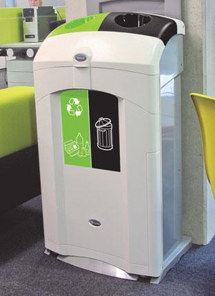 Los cestos diferenciados para reciclaje Nexus 100 Duo™ poseen un diseño especial para separar dos fracciones en espacios reducidos.