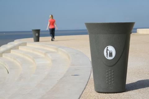 El cesto para residuos Luna™ es construido con Durapol®, un polímero coloreado en masa y de gran resistencia anti vandálica. Durapol no se oxida ni se astilla en caso de golpes, no requiere repintado en ningún momento de su vida útil.