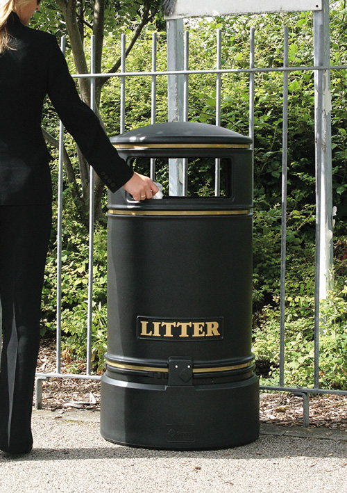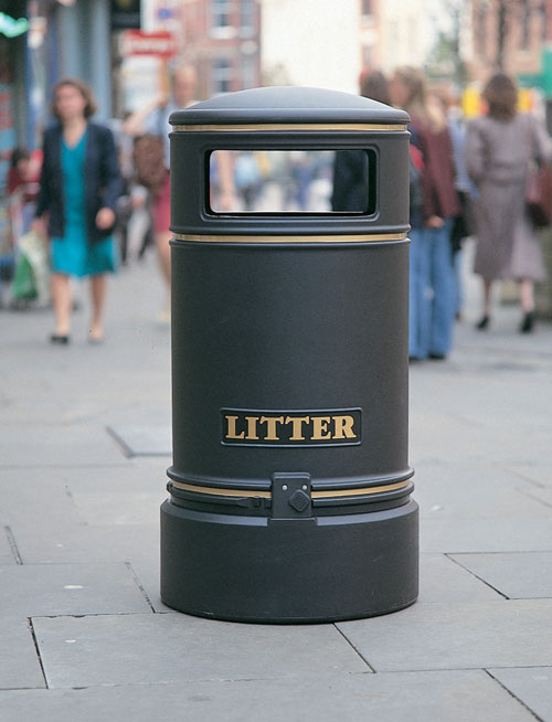 Es un cesto para residuos de estilo victoriano que posee una terminación ligeramente texturada para otorgar una apariencia jerarquica y suntuosa. Cuenta con un gran volúmen de carga de 110 litros de capacidad, lo que permite reducir la frecuencia de vaciado del mismo y evitar su desborde. Tales características lo hacen ideal para instalar en centros urbanos como paseos peatonales y centros comerciales.