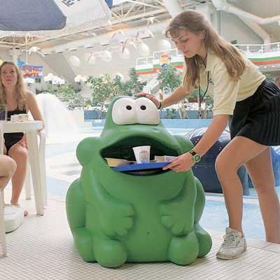 Froggo™ es un simpático y práctico cesto para residuos, con su color verde y sus ojos saltones es un producto que no pasará inadvertido. Esta rana atraerá a los niños que se divertirán tirando la basura en su boca, y así ayudará a mantener limpio el medio ambiente.